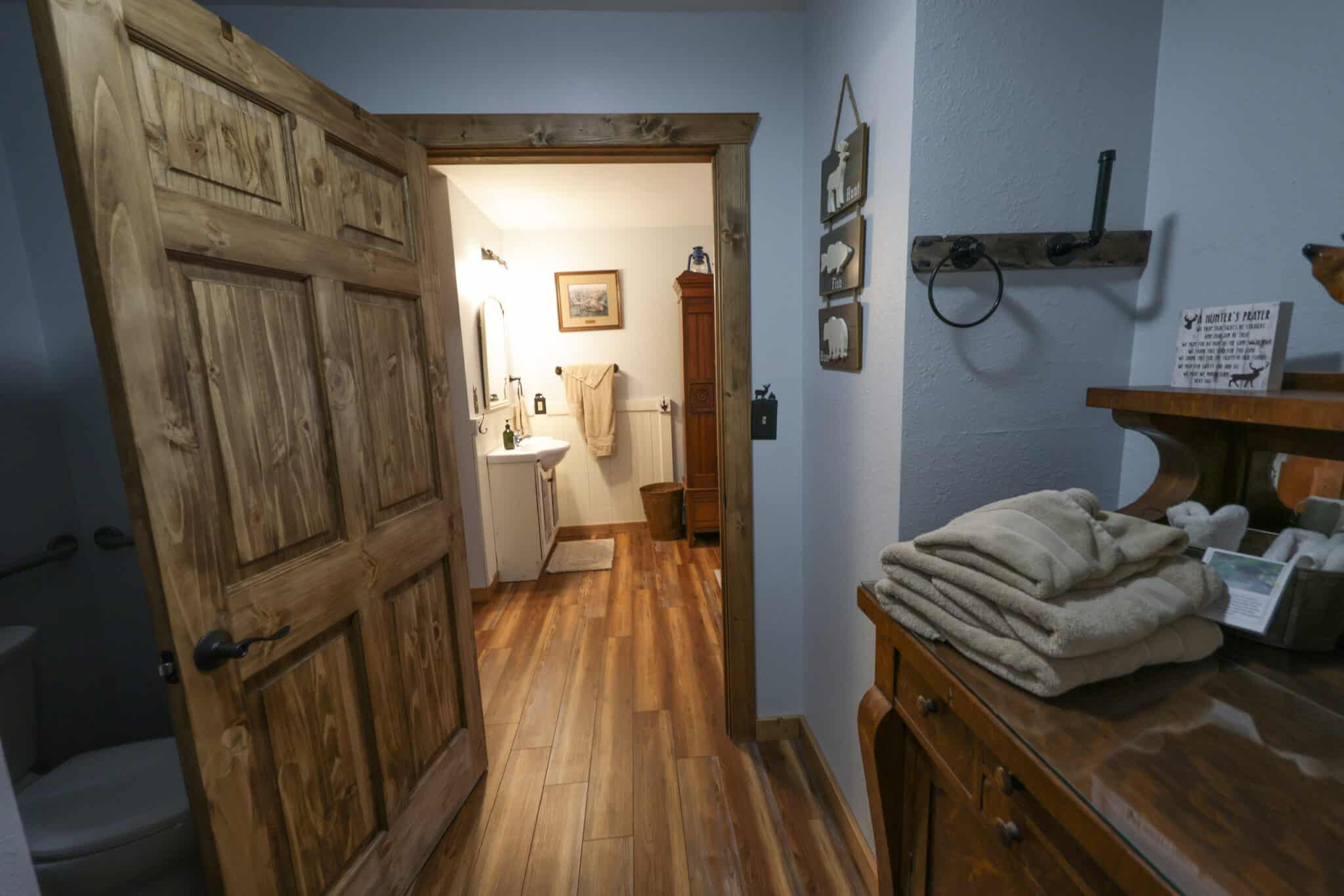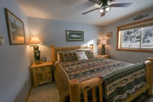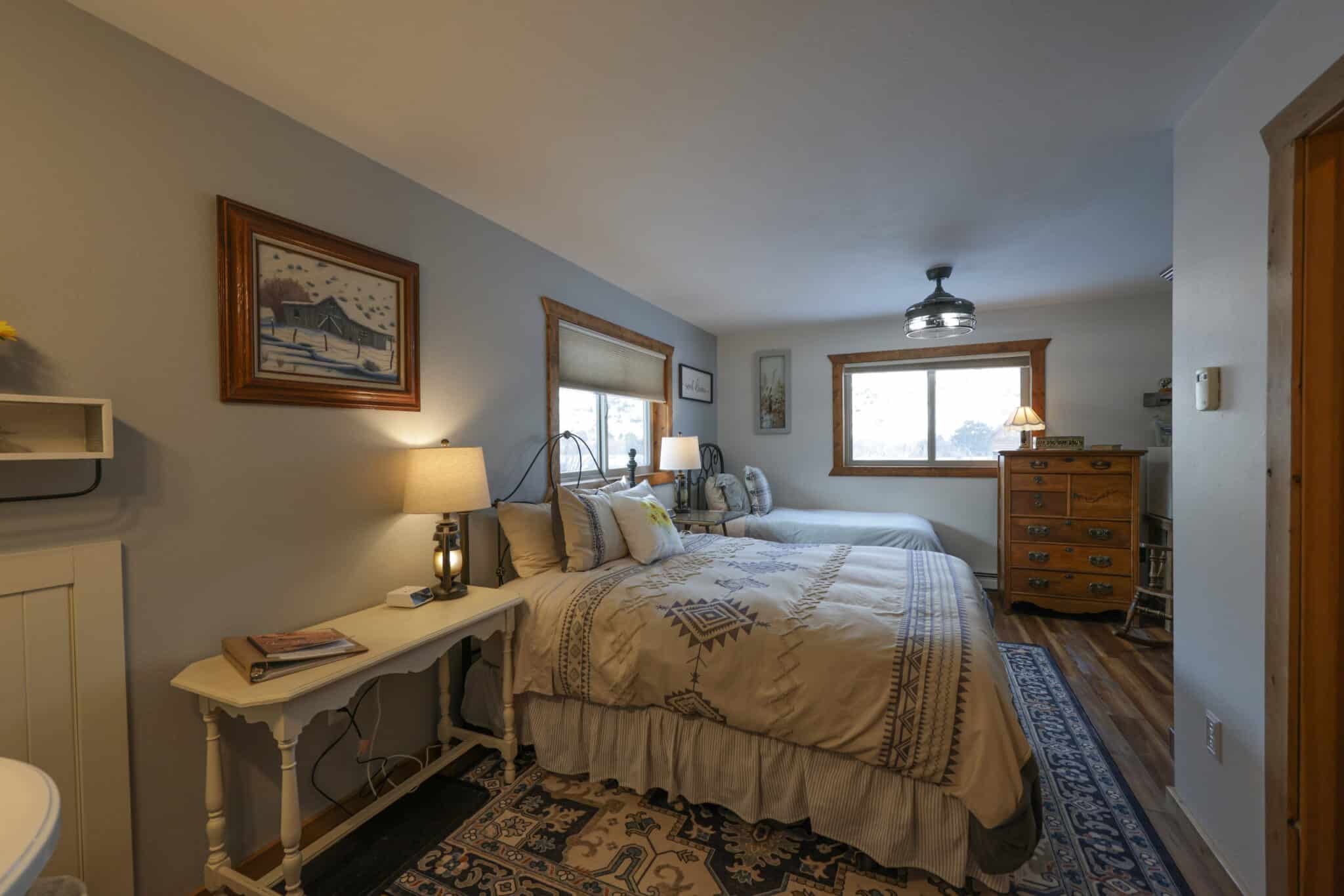 CABIN 1 – 3 & 4: You can relax in one of our three two-bedroom cabins, these three cabins all have the same floor plan ech cabin sleeps six guests and includes a master bedroom with a queen bed, twin bed and private tub/shower. The second bedrooms have a double bed with a single or bunk bed combo. Each also has a sleeper sofa and an additional full bath. Cabins are a minimum of four guests.