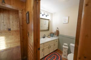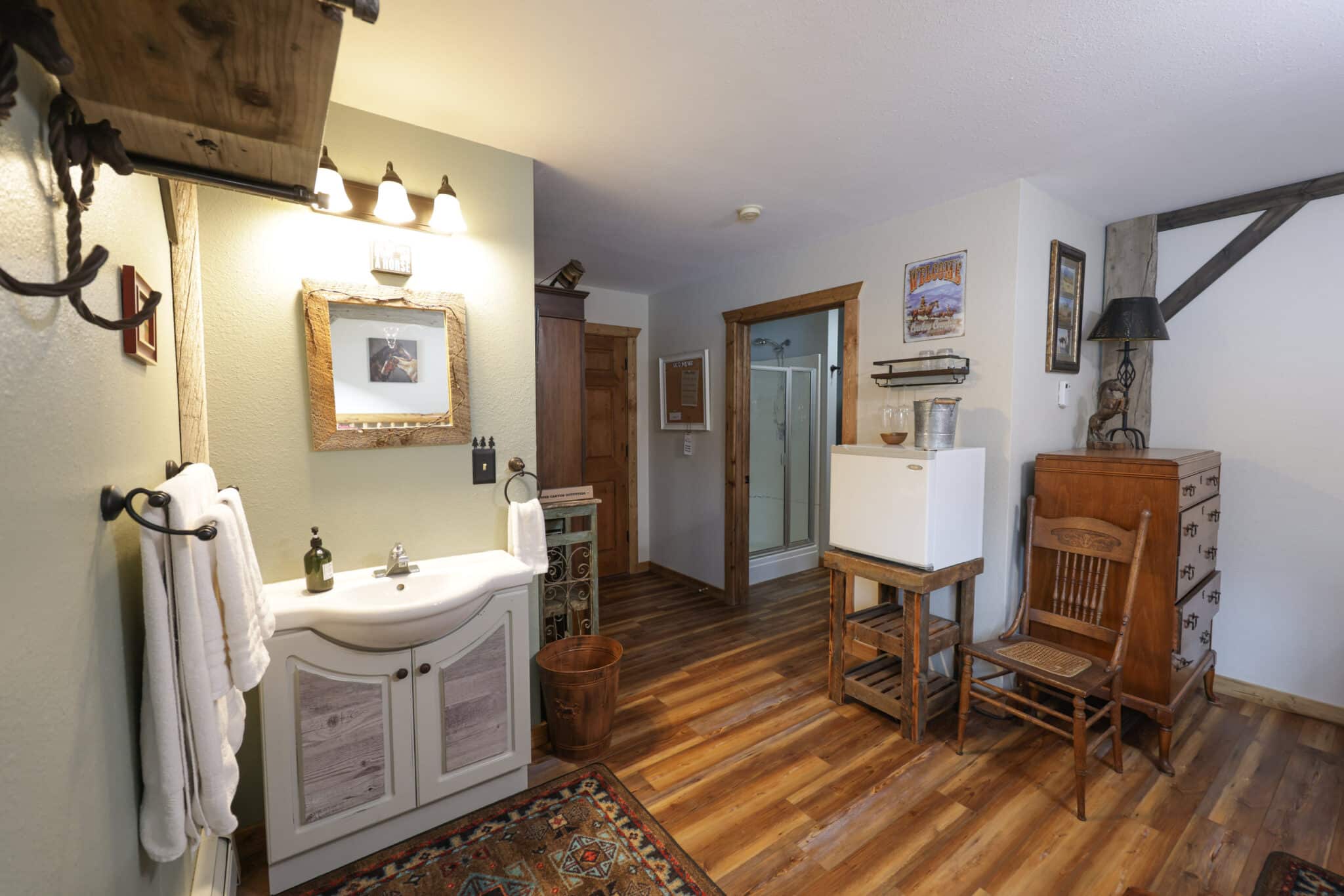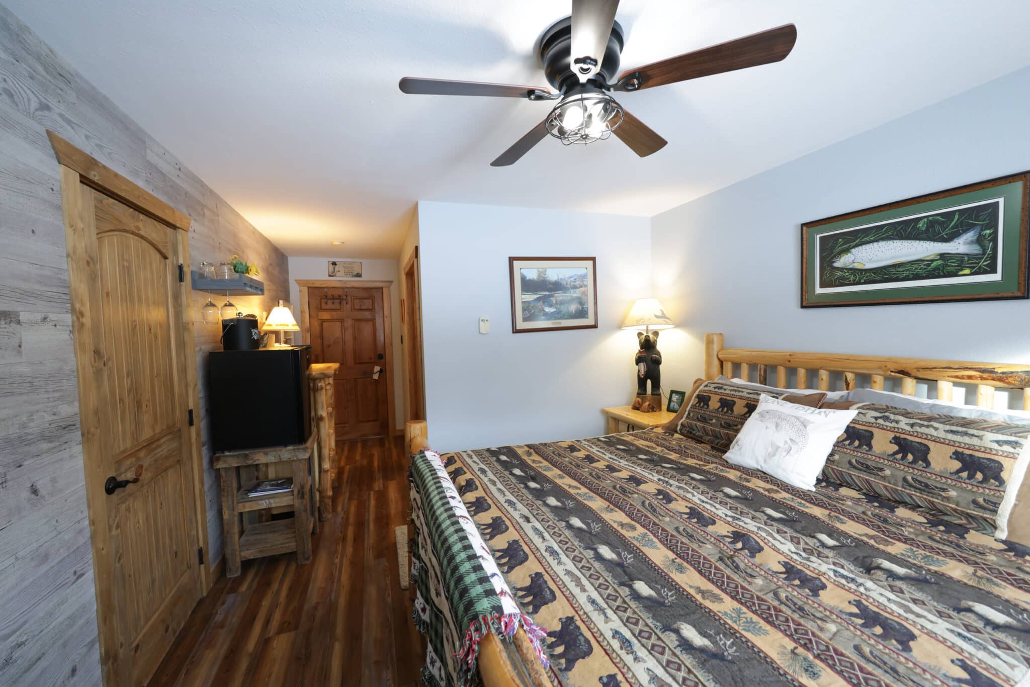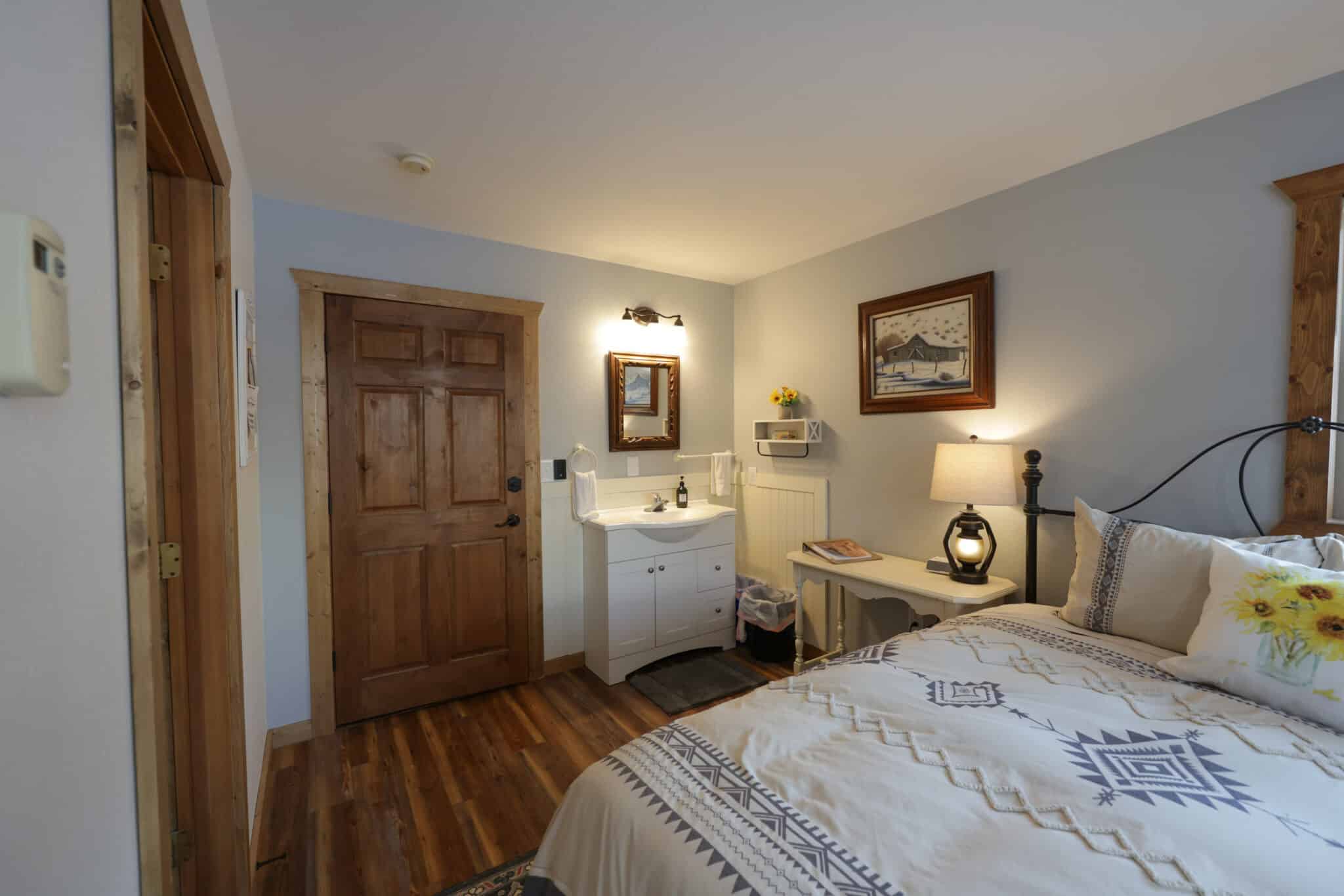 CABIN 1B: This cabin is two rooms with a full bathroom. Coffee maker and mini fridge makes this cabin a great hideaway while giving you the meals and social time in the lodge. There is a double bunk in the main room and a single bed in the second room. Cabin is a minimum of two guests. |