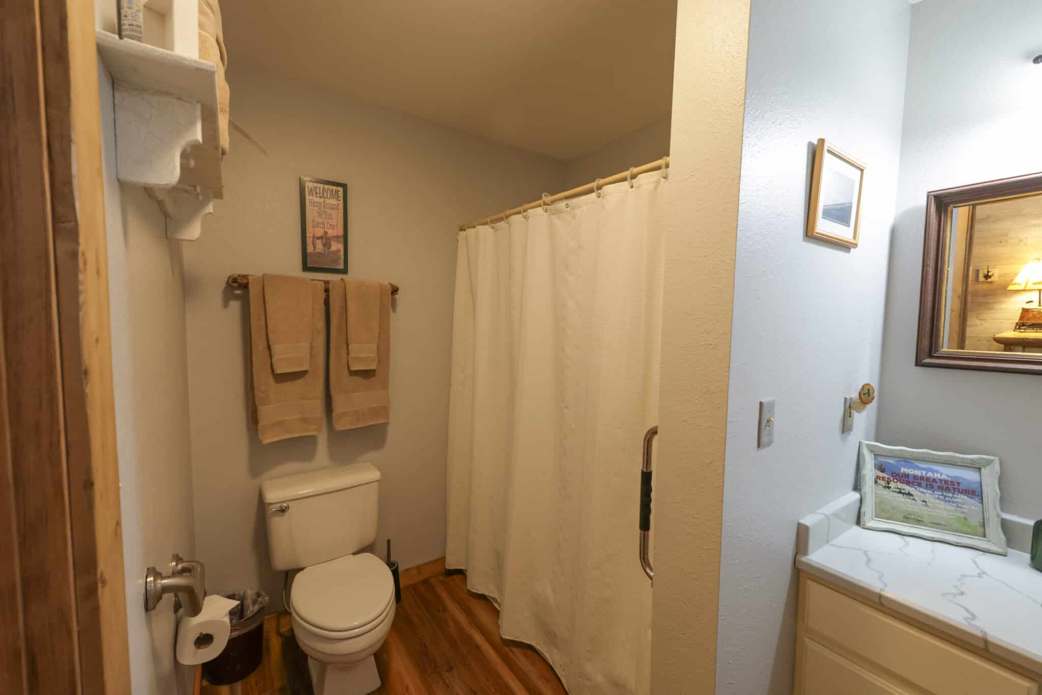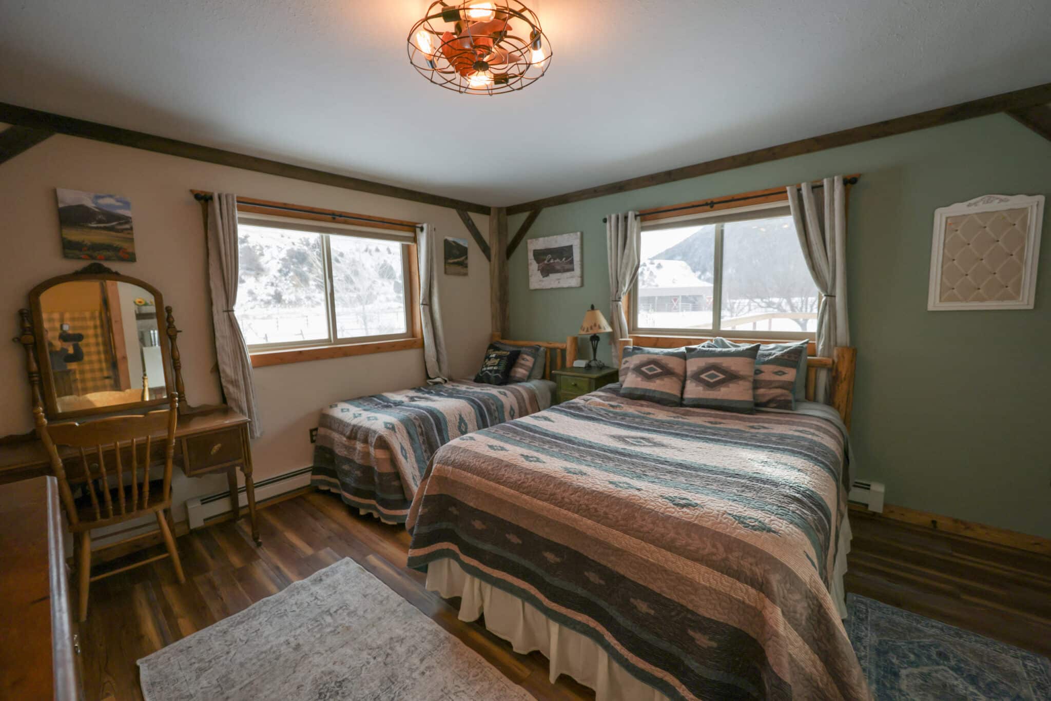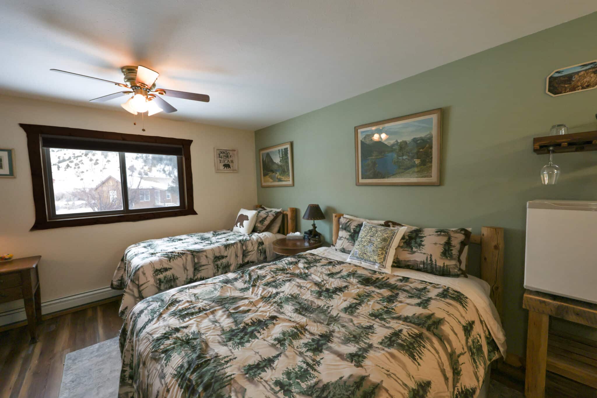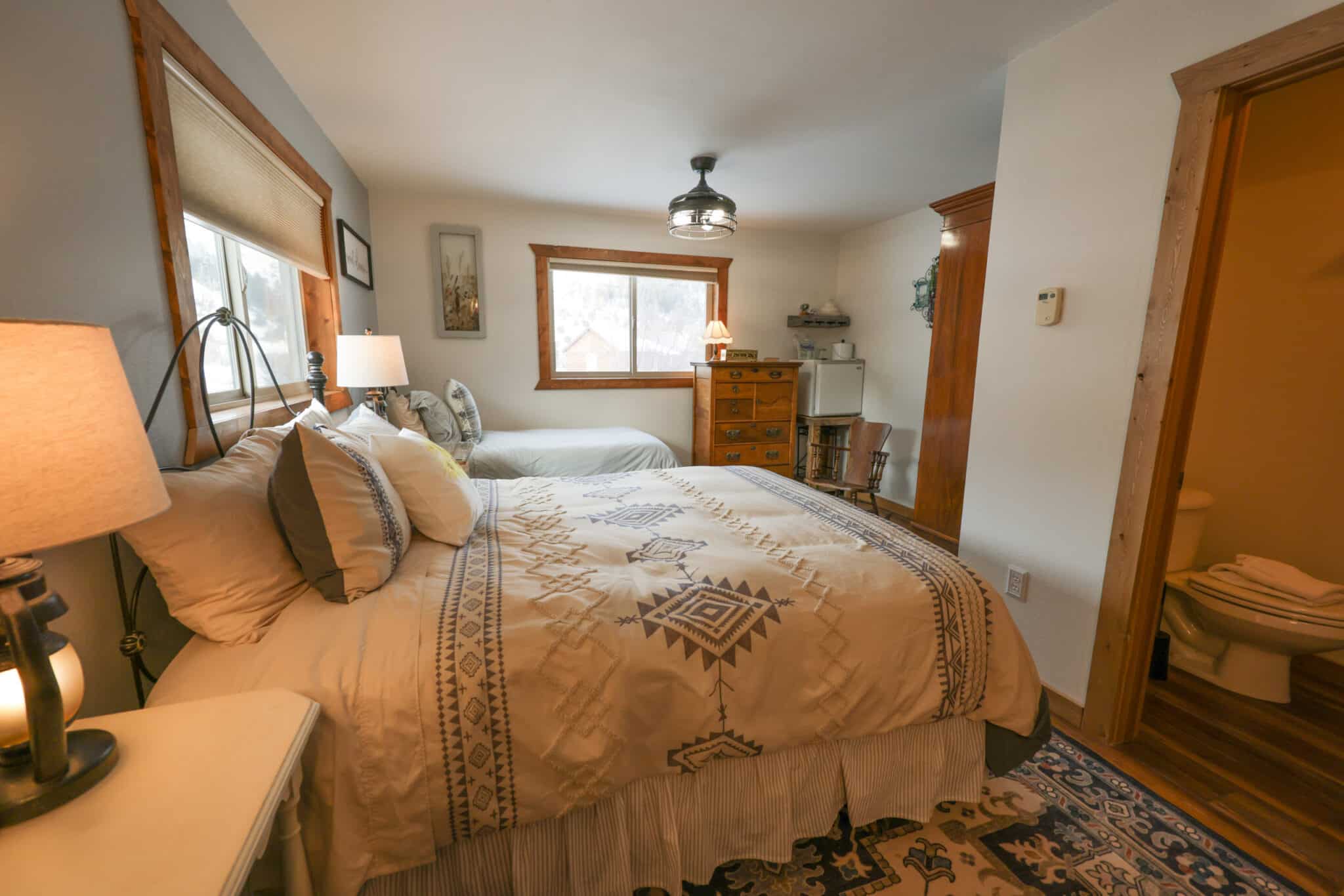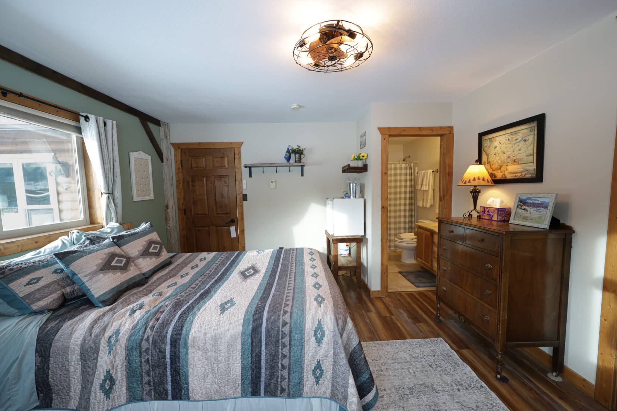 CABIN 1A: Putting your feet up in our two bedroom one bath cabin with a mini kitchen is easy to forget time as this cabin is situated so you can enjoy the beautiful Montana sunsets. Master bedroom has a queen and single bed. The second bedroom consists of a single bed and a set of bunks. Cabin is minimum of three guests.
